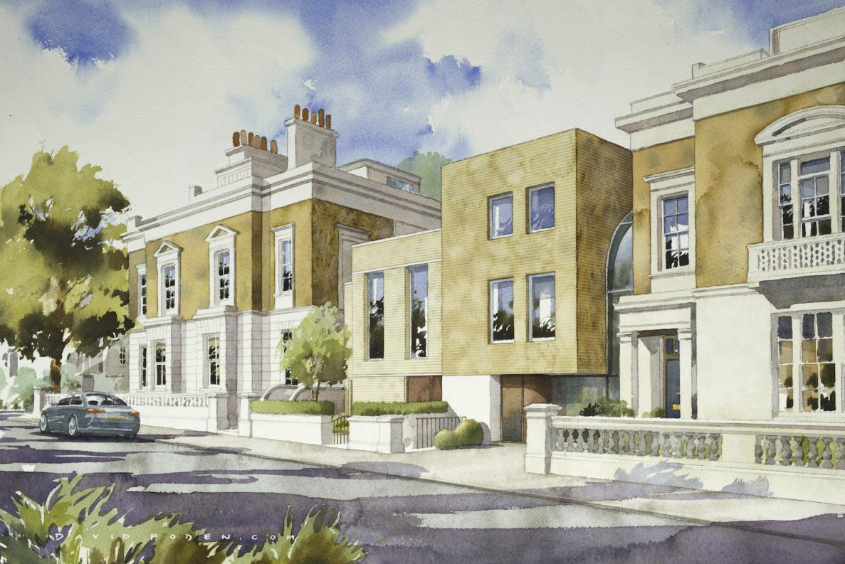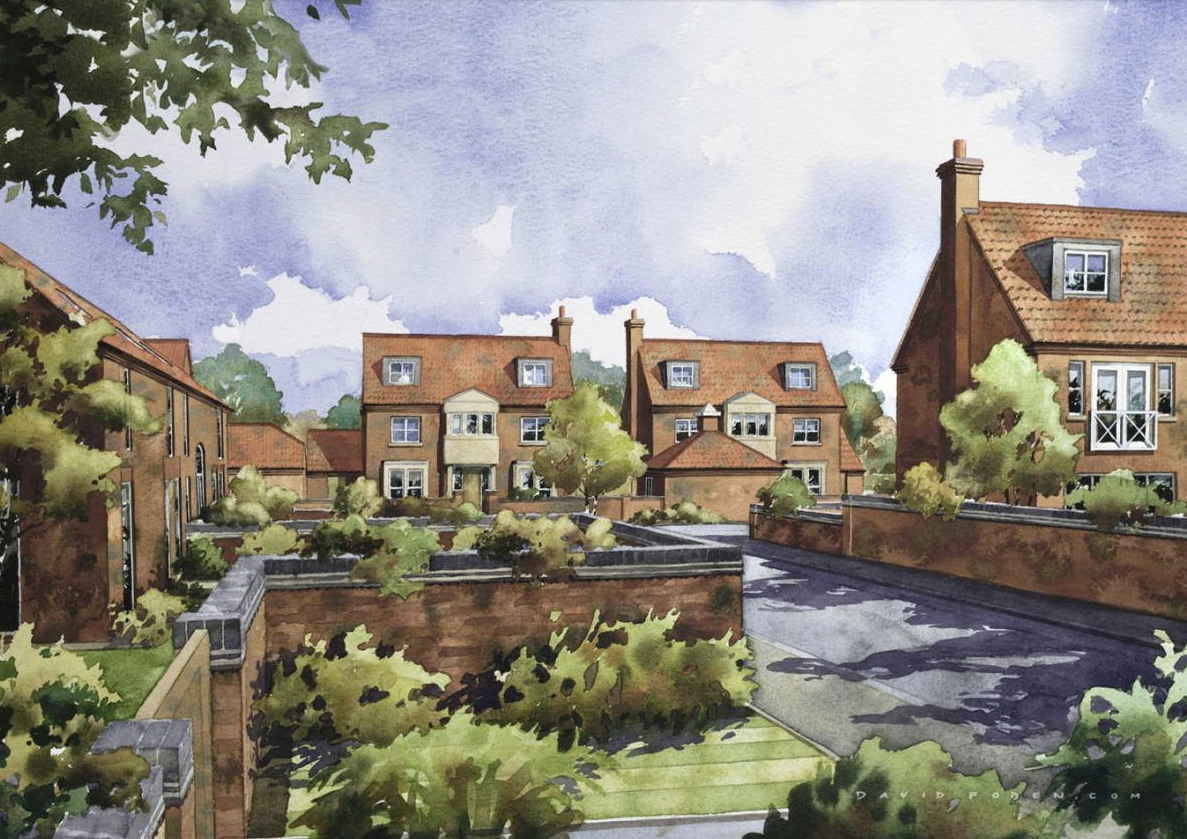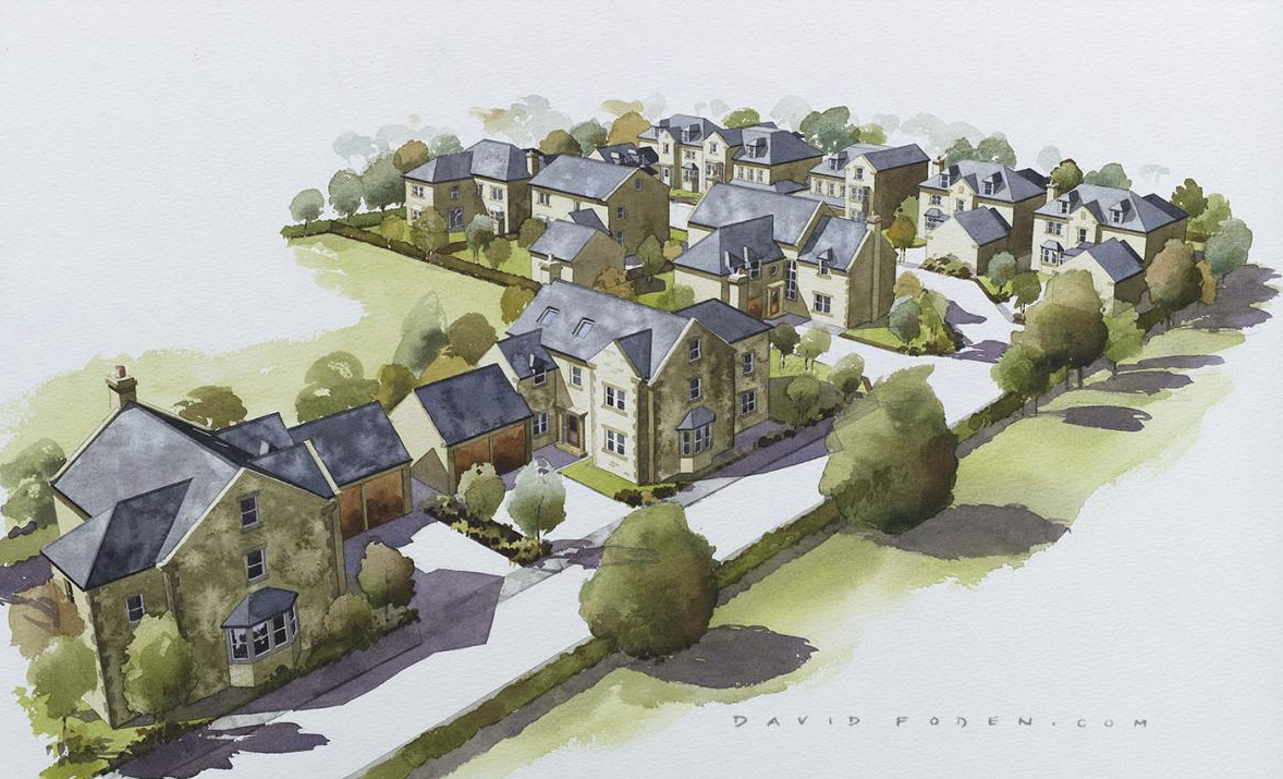 Watercolour offers a persuasive solution for the submission of certain planning applications allowing for artistic license rather than detail cluter. Certain sensitive planning submissions require projects to be set convincingly into their natural landscape , this is where photorealistic montage or CGI can excel.